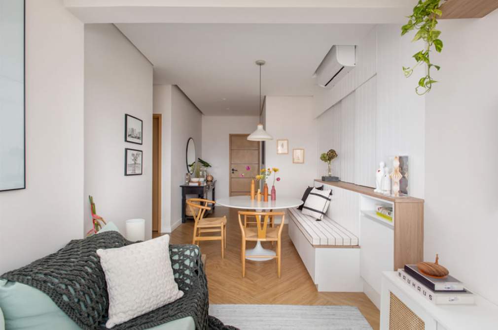 Design clean e soluções inovadoras marcam apartamento de 66 m² em Santos