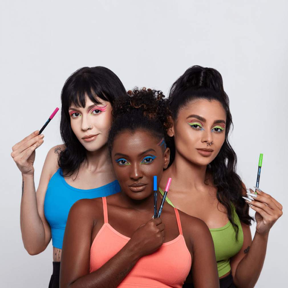 Agora, se você quiser algo menos chamativo, mas que ainda ouse e brinque com cores, pode apostar nas diferentes possibilidades de delineados. Use os delineadores coloridos disponíveis na linha Lápis Coloridos Para Olhos Chill Colors, nas cores rosa neon, azul, rosa escuro e verde neon. Eles são perfeitos para adicionar um toque de cor e diversão ao seu visual junino, ao mesmo tempo em que proporcionam uma proposta mais moderna.