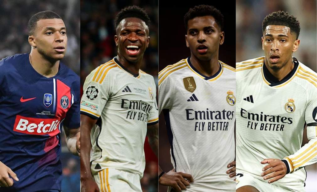 Real Madrid 2024: Bellingham, Vinicius Jr, Rodrygo e Mbappé - R$ 3,4 bilhões