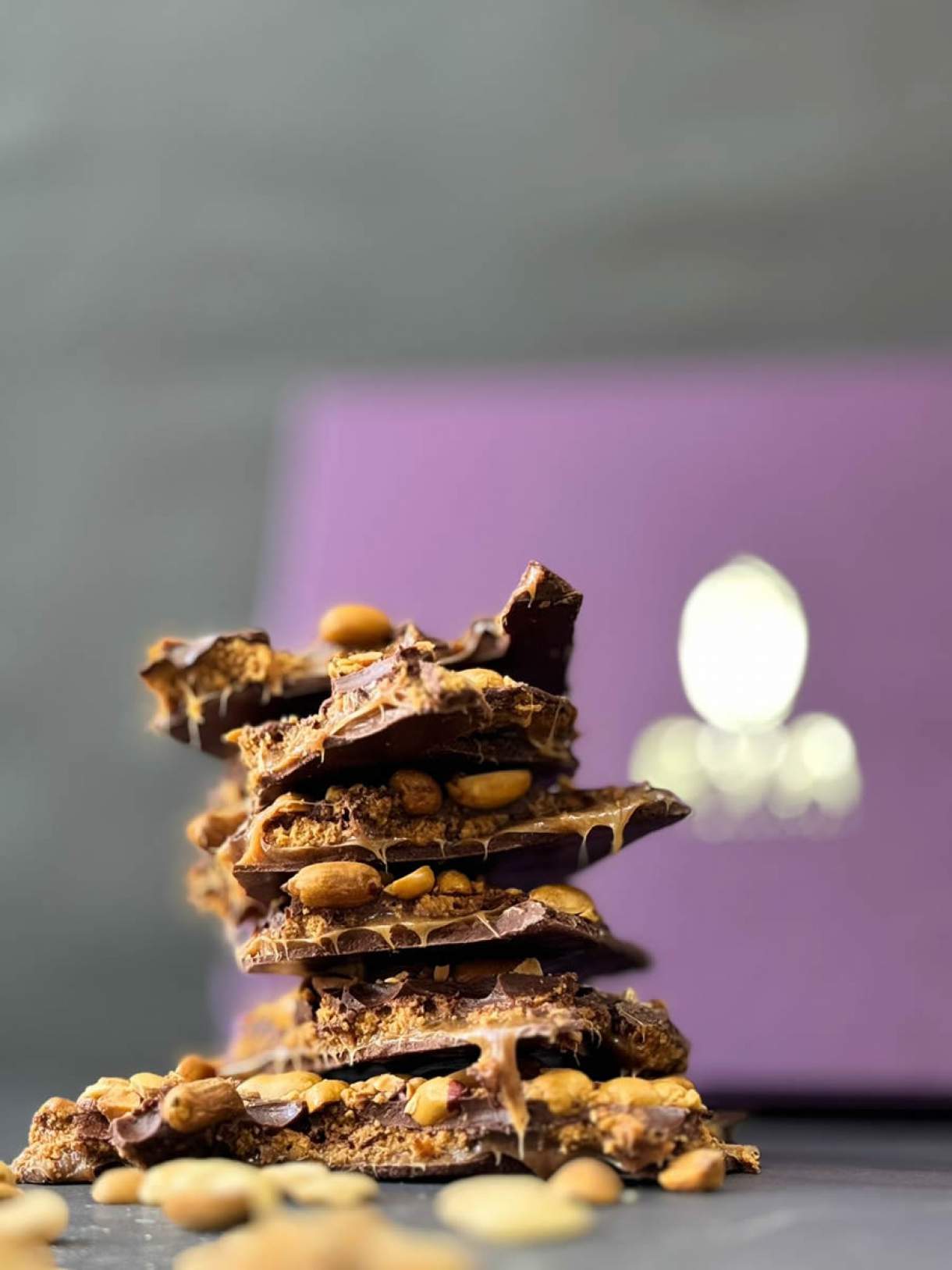 - Lascas de Chocolate: Pedaços de combinações mais gostosas do mundo: Chocolate com Caramelo com Flor de Sal, Caramelo com Amendoim e Pistache.