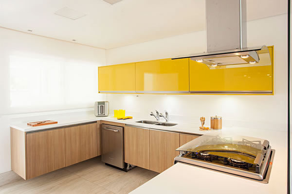 Nesta cozinha, as arquitetas utilizaram o amarelo que elaborar um ambiente vibrante e atrativo à residência | Projeto do escritório Korman Arquitetos | Foto: Gui Morelli