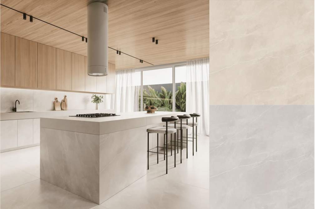 Neutra, atemporal e com uma superfície marmorizada: a Série Galileu, da Incepa, é encontrada no Superformato 120 x 120 cm | Divulgação: Incepa