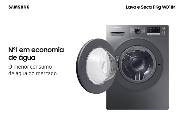 Com a linha de lava e seca 11kg, por exemplo, os consumidores encontram economia para o bolso, além de funcionalidades que facilitam o dia a dia. Para comparação, a WD11M, por exemplo, gasta 48,2 litros de água por ciclo, enquanto outras máquinas podem gastar, em média, 77,64 litros por ciclo.