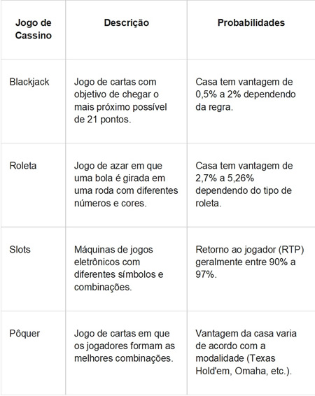 Quais são as principais probabilidades a serem consideradas nos jogos de cassino?