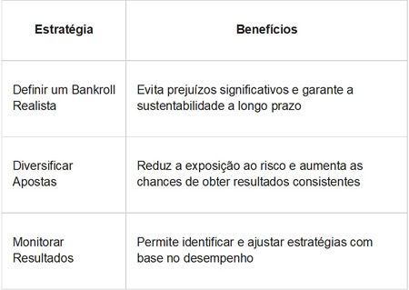 Além da pesquisa e análise de informações, uma estratégia eficaz de gerenciamento de risco é fundamental para obter sucesso a longo prazo nas apostas esportivas. Estabelecer um bankroll realista, diversificar suas apostas e monitorar cuidadosamente seus resultados são algumas das estratégias essenciais.
