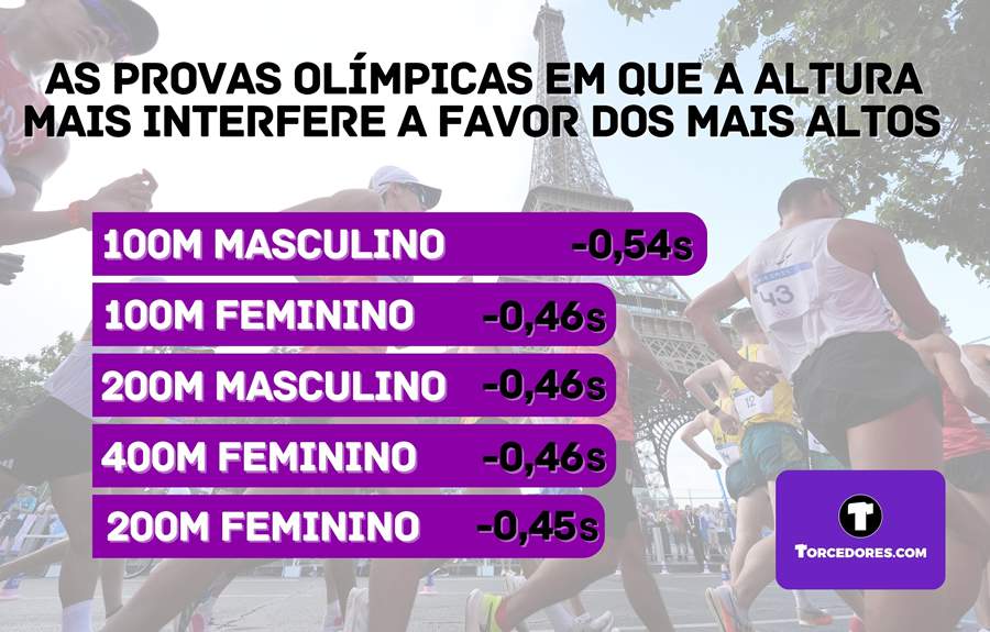 Para se ter uma ideia, nas provas de 100m rasos masculino, atletas mais altos concluíram suas provas em média 0,54s mais rápidos que os atletas mais baixos. O ex-atleta jamaicano Usain Bolt, velocista mais rápido de todos os tempos, mede 1,95m de altura.