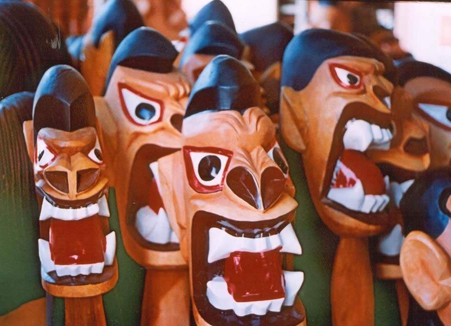 As esculturas, feitas geralmente em barro ou madeira, são encontradas principalmente em embarcações fluviais e servem como amuletos protetores contra os perigos das águas.