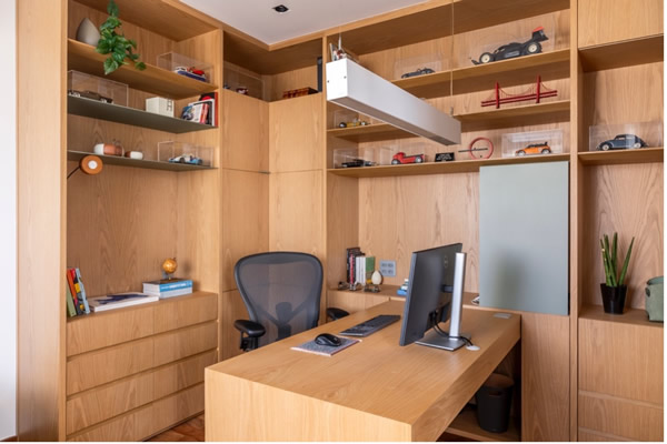 As decorações de um espaço dizem muito sobre a pessoa que o usa. Na imagem acima, os brinquedos, as cores e os padrões e a organização revelam uma pessoa criativa que gosta de ação e aventura | Divulgação: Rafael Renzo