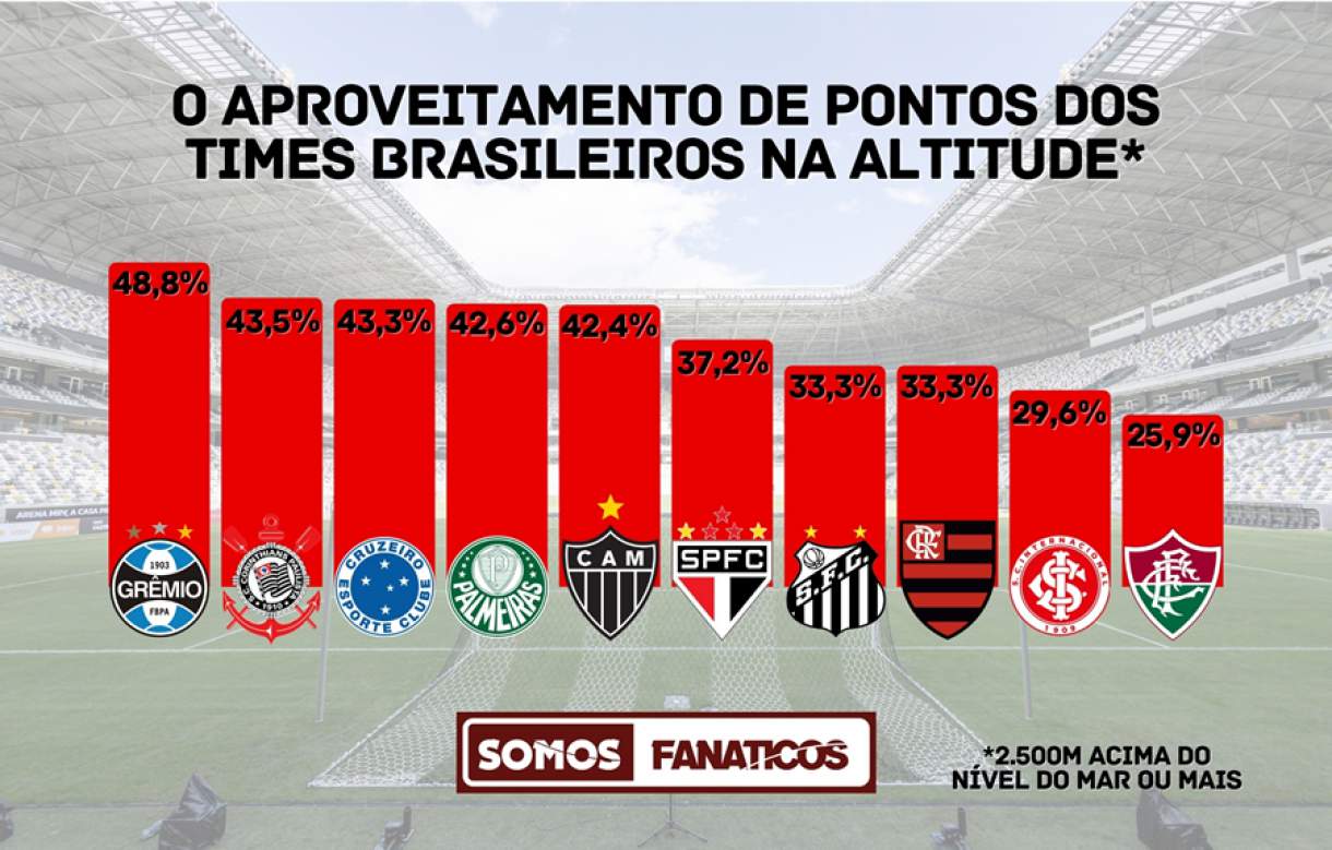 Os dois times brasileiros que possuem melhores resultados acima dos 2.500m acima do nível do mar são Grêmio e Corinthians.