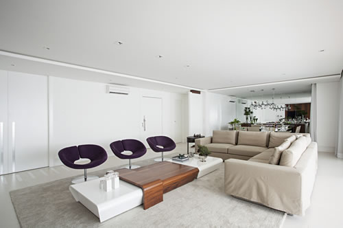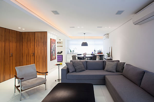 Nesse projeto do Korman Arquitetos, as almofadas são o ponto de cor e destaque. Foto: Gui Morelli