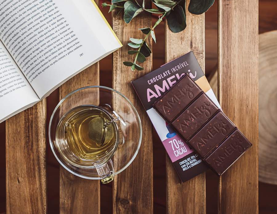 Um dos destaques da linha “Bem-Estar” da AMEIzi fica por conta do “Oi Determinação”, chocolate 70% cacau que leva avelã, cranberry e colágeno. Já o delicioso “Olá Leveza”, também 70% cacau, leva amora, maracujá e castanha-do-Pará. “Todas as nossas receitas são preparadas a partir de estudos que destacam a importância do consumo de nutrientes que podem auxiliar no bem estar das pessoas. Nossos chocolates recebem ingredientes nobres e frutas, mesclas baseadas em ciência e sabor, tudo potencializado pela expertise da Cuore di Cacao”, destaca Aline Quissak.