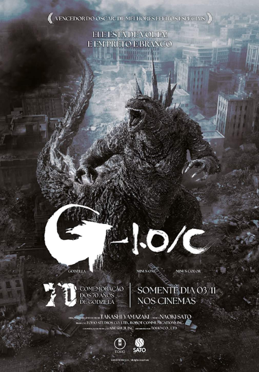 A versão monocromática do vencedor do Oscar 2024 de Melhores Efeitos Visuais, GODZILLA MINUS ONE / MINUS COLOR, será exibido nos cinemas nacionais no dia 03 de novembro, em comemoração aos 70 anos do monstro, que fez sua primeira aparição nas telonas em 1954. O filme será exibido excepcionalmente no domingo (3). Entre os cinemas selecionados, o Sato Cinema, oferecerá três oportunidades para os fãs da franquia em assistir ao filme na versão preta e branca.