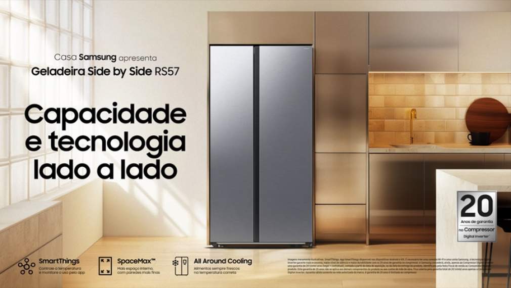 A geladeira Side by Side não é apenas mais um refrigerador: ela transforma a experiência de organização e armazenamento dos seus alimentos na cozinha. Combinando tecnologia avançada, eficiência energética com design discreto e elegante, essas geladeiras oferecem soluções práticas para as demandas do dia a dia. Na Samsung, o modelo RS57 conta ainda com recursos de conectividade, atendendo às demandas de uma vida moderna e sustentável dos consumidores. Disponível na cor Inox, o modelo foi lançado recentemente no mercado brasileiro em duas versões: uma com dispenser de água gelada e 560 litros de capacidade interna, e outra sem dispenser, com capacidade de 564 litros. Confira os principais benefícios e dicas de uso para aproveitar ao máximo essa inovação.