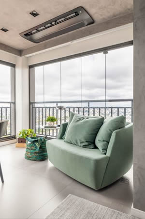 Além de ser uma cor que se sintoniza muito bem com plantas e elementos naturais, o verde menta também reflete luminosidade, tornando a varanda um ambiente mais alegre e convidativo para receber amigos ou relaxar no dia a dia, conforme o projeto produzido pelo arquiteto Bruno Moraes | Projeto BMA Studio | Foto: Guilherme Pucci