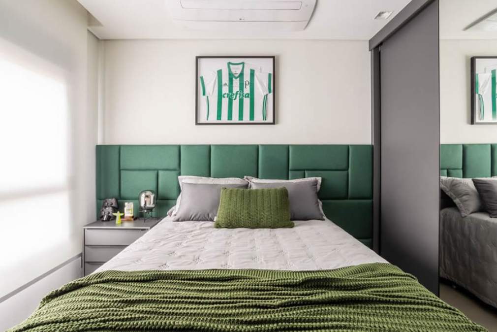 - Uma cabeceira de cama em tom de verde é uma opção sofisticada para renovar o visual do quarto, em tons de verde esmeralda ou musgo, em acabamentos foscos ou polidos e em revestimentos de madeira ou veludo, o profissional do BMA Studio diz que a cabeceira verde acrescenta um ponto focal no dormitório e um clima de relaxamento.