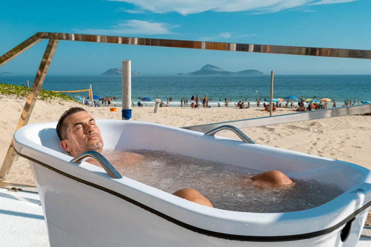 Em meio ao verão carioca, a Rio Academia, academia gratuita em Ipanema, traz banheira de gelo para a população