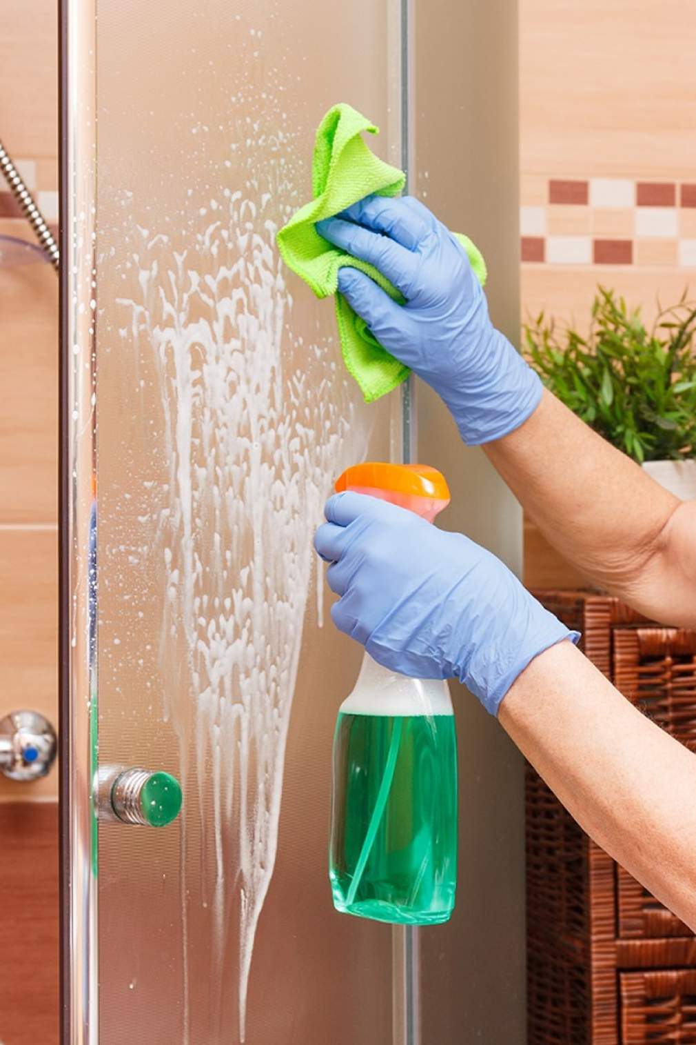 O vinagre branco é um excelente aliado contra resíduos de sabonete e gordura corporal. Basta misturar partes iguais de vinagre e água morna, aplicar com uma esponja e deixar agir por 10 minutos antes de enxaguar. O resultado? Um vidro brilhante e sem marcas indesejadas.