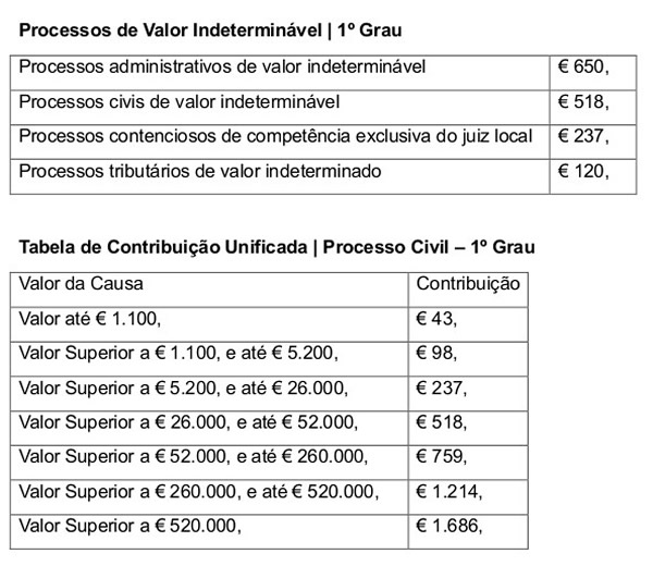 1) Violação do Artigo 47 da Carta dos Direitos Fundamentais da União Europeia, que garante a todos o direito a um recurso efetivo e acesso à Justiça sem obstáculos financeiros desproporcionais. O novo contributo impõe um custo proibitivo, que pode chegar a milhares de Euros, apenas para o primeiro grau de um processo familiar, tornando o exercício desse direito condicionado à situação financeira do requerente.
