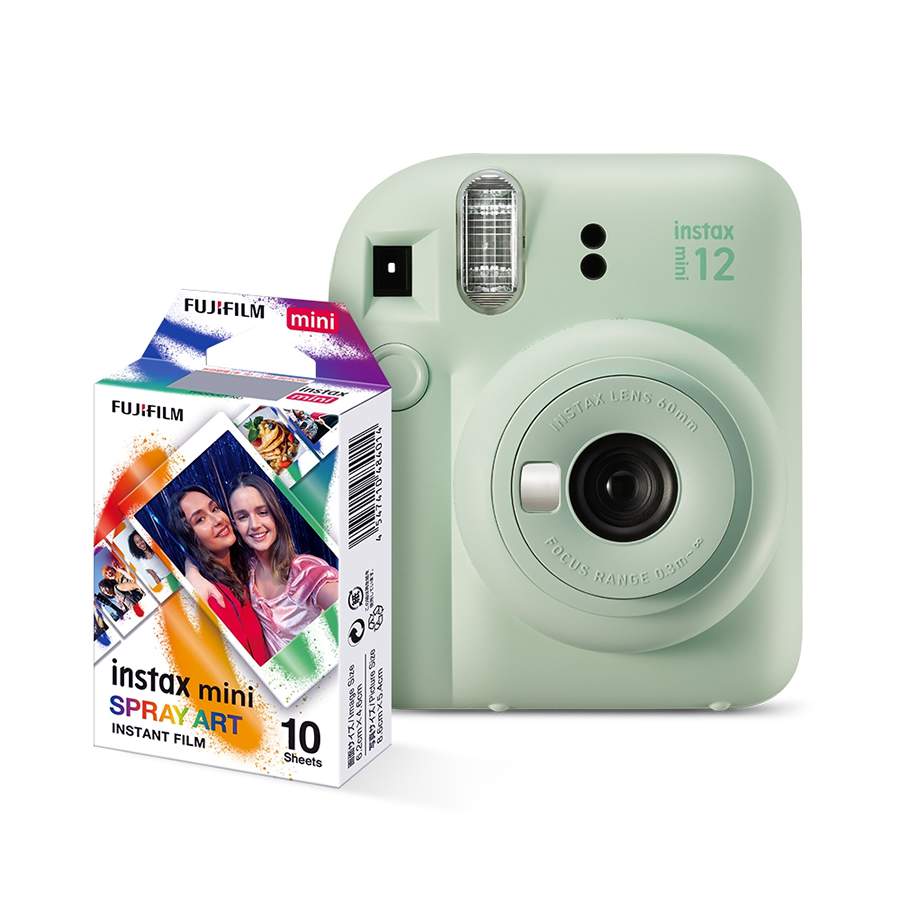 Já a Instax mini 12, com visual vibrante e design intuitivo, está disponível nas cores verde e lilás e pode ser adquirida em combo com o filme Spray Art com 15% de desconto, por R$ 494,00. Com espelho frontal e lente giratória, ela é ideal para selfies e registros espontâneos em qualquer ocasião.