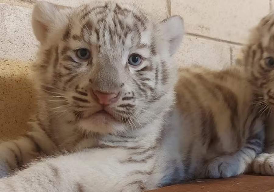 Com olhos azuis penetrantes, pelagem clara e listras marcantes, os filhotes chamam a atenção por sua beleza hipnotizante. Não são albinos, como muitos pensam. O que os diferencia é o leucismo, uma mutação genética rara que reduz a produção de melanina, mas mantém a pigmentação dos olhos e das listras.