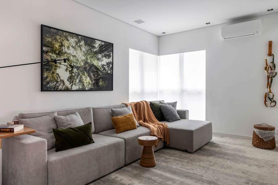 Já as cores claras são caminhos lógicos para ampliar visualmente um espaço e refletir a luz. Todavia, isso não quer dizer que um cômodo pequeno deva ser, predominantemente dessa forma, sendo visto, muitas vezes, como sem expressão. “É possível sim adicionar outras tonalidades e, ainda assim, manter essa percepção de ambiente mais espaçoso e aberto”, ressalta o arquiteto.