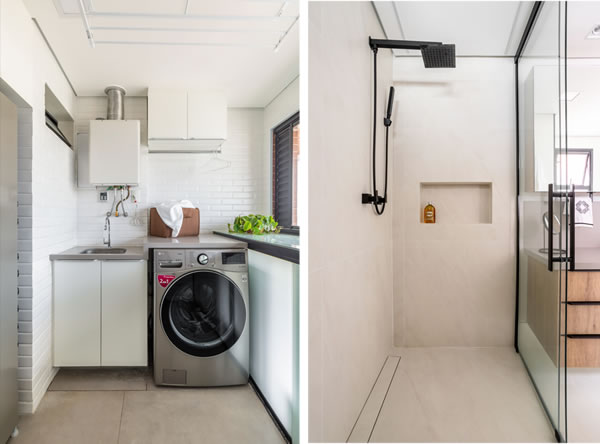 O aquecedor a gás simplifica o ajuste da temperatura da água que chega até o chuveiro. Quando bem regulado, o morador nem precisa acionar o misturador de água fria para alcançar o nível de aquecimento desejado | Projetos BMA Studio – arquiteto Bruno Moraes| Fotos: Guilherme Pucci