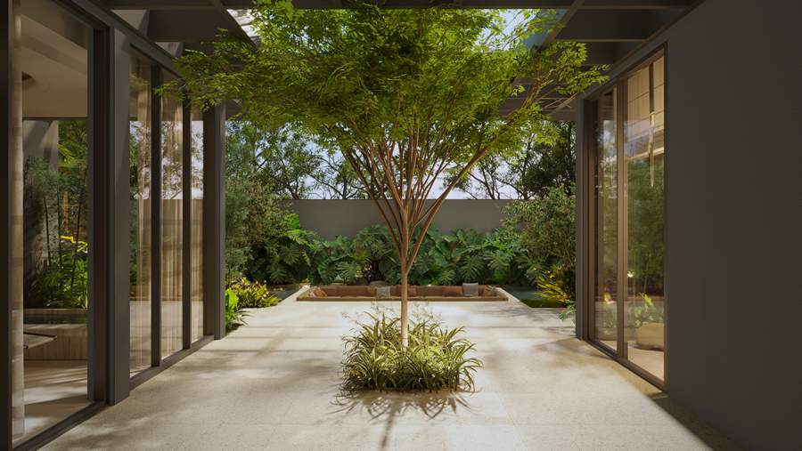 “O paisagismo não é só para ver. É para viver. Em um projeto de paisagismo regenerativo, nada é por acaso. Cada planta tem uma função: espécies frutíferas alimentam a fauna; espécies caducas revelam a passagem do tempo. O objetivo não é apenas a beleza, mas também regenerar o solo, atrair vida, proteger a biodiversidade local. É um trabalho com intencionalidade, que cria conexão entre as pessoas e o ambiente”, explica Iago de Oliveira, sócio-fundador do escritório Bloco Blase, que prioriza a sustentabilidade, o conforto e bem-estar na construção civil.