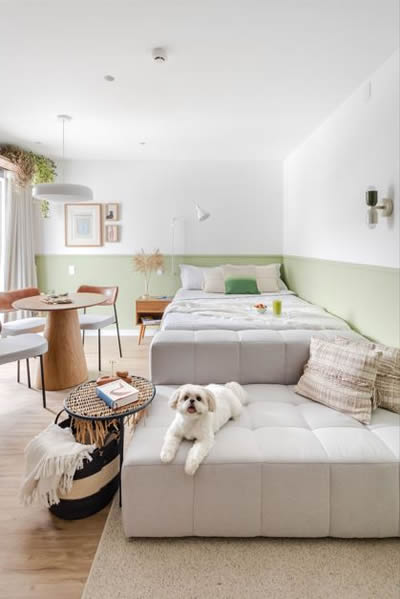 Ao definir o layout do ambiente para acomodar pets, o tamanho do espaço é menos importante do que a qualidade de vida oferecida. Para garantir o bem-estar dos animais, a arquitetura, por mais eficaz que seja, não resolve tudo sozinha: é fundamental que o humano assuma a responsabilidade de proporcionar estímulos dentro de casa por meio de atividades e passeios frequentes nas proximidades do imóvel.