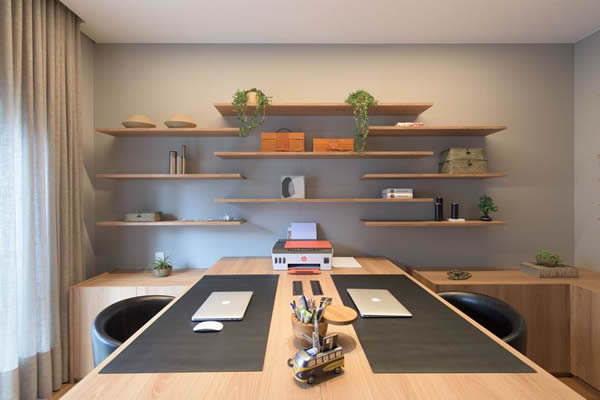 Outras possibilidades de layouts estão em incluir home office, pois o trabalho em casa ganhou destaque durante a pandemia e é uma tendência que veio para ficar, então um cantinho de escritório com os documentos se tornou essencial. Investir nas áreas de lazer é uma boa dica, como incrementar com bar e adega próximo às áreas sociais, criar salas de jogos e cinema. No duplex, tudo pode ser moldado a gosto dos moradores.