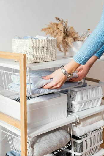 - Revise gavetas e armários a cada troca de estação: esse é o melhor momento para reorganizar roupas, identificar excessos e ajustar os espaços às novas necessidades;