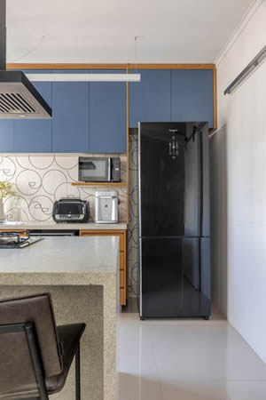 Com a tendência da integração das áreas sociais, salas abertas para a cozinha passaram demandar um desenho que delineie, sutilmente, a área de preparo e a de convivência, com uso de bancadas em meia‑altura, pendentes decorativos e variações de revestimento para criar barreiras visuais sem erguer paredes. “Uso a ilha como ponte entre o operacional e o social. Assim, quem cozinha continua no centro da conversa, sem levar fumaça para a sala”, comenta o profissional.