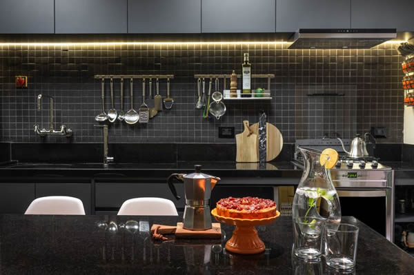 “Dessa forma, podemos transformar a atmosfera da cozinha ao longo do dia. Prefiro LEDs lineares nas bancadas porque eliminam sombras e deixam as mãos livres para cortar e medir ingredientes, mas sem exageros já que o LED tende a causar um cansaço visual”, ensina.