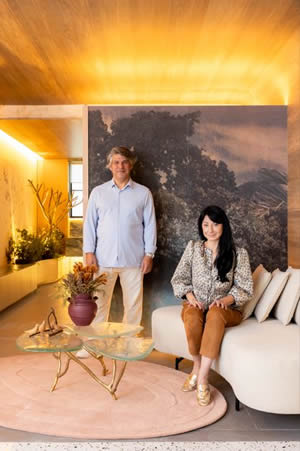 Os sócios Alexandre Pasquotto e Mariana Meneghisso comemoram 20 anos do escritório Meneghisso & Pasquotto Arquitetura na CASACOR São Paulo | Foto: Rafael Renzo