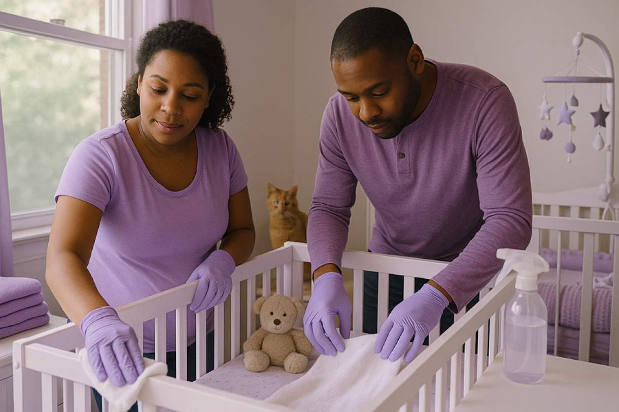 A Organização Mundial da Saúde recomenda que ambientes com recém-nascidos tenham limpeza diária das áreas de maior circulação como quarto, sala, banheiro e cozinha. Além disso, orienta evitar o uso de vassouras (que levantam pó) e dar preferência a panos úmidos e aspiradores com filtro HEPA. No quarto do bebê, a higienização dos móveis, brinquedos e acessórios deve ser feita com delicadeza e frequência.