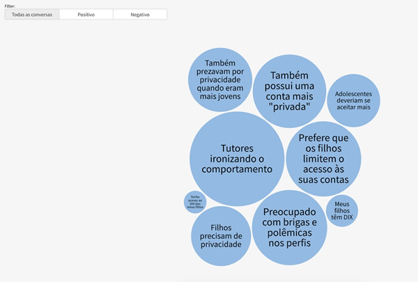 Entre os principais motivos que ilustram as opiniões parentais, 15% deles indicam que, mesmo atentos aos riscos, incentivam espaços fechados para preservar a intimidade dos filhos. Percentual semelhante cita a falta de supervisão como principal preocupação, um risco para a segurança e o bem-estar dos filhos no ambiente digital. Já 14% dos pais também possuem contas privadas Para 9,5% dos tutores a privacidade é essencial no desenvolvimento dos mais jovens. Por fim, 7,5% dos pais manifestam se preocupar com a "fuga” dos mais jovens para ambientes mais privados, e citam a falta de aceitação como um problema geracional.