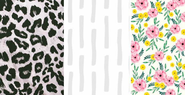 Para ilustrar alguns tipos de estampa: animal print (à esquerda), minimalista (no centro), floral (à direita) | Fotos: Pexels e Freepik