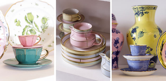 A 6F traz algumas sugestões: a coleção Vintage, da Bitossi, que transforma o ritual de beber chá em um verdadeiro ato de elegância. Disponível em cores clássicas, texturas sutis e formas que remetem à tradição italiana. A coleção Diva, da Ginori 1735, que foi criada para encaixar e conversar entre si, possibilitando composições únicas. São quatro cores em tons pastel: celeste, amarelo, rosa e verde, enriquecidas por detalhes em linhas douradas.