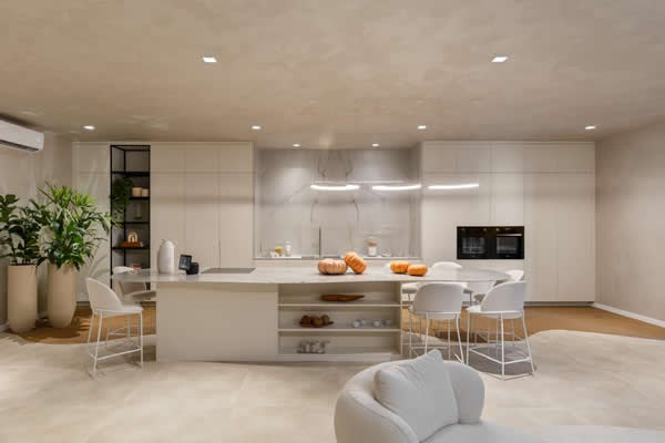 Um branco ondulante imbuído de serenidade, que convida ao verdadeiro relaxamento e foco, permitindo que a mente divague e a criatividade respire.