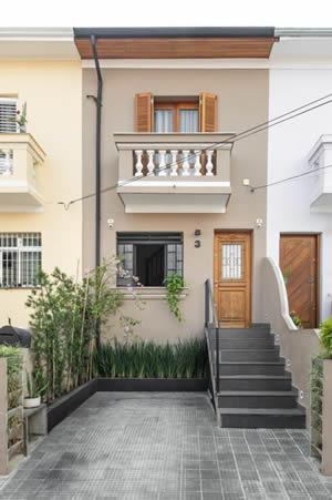 Neste sobrado, Paulo apostou numa reformulação moderna para uma residência de vila portuguesa. A fachada foi preservada com a esquadria de ferro, porta original e os balaústres de concreto | Projeto Atelier Paulo Tripoloni | Foto: Adriano Escanhuela
