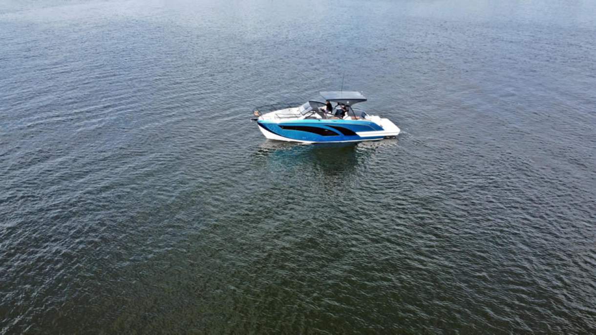 Embora ofereça cabine com duas camas e estrutura para pernoite ocasional, a proposta central da Flyer 32 está no uso diurno. “Desenvolvemos o projeto para entregar esportividade, praticidade e conforto em uma embarcação de porte médio, mas com a mesma sensação de liberdade e aproveitamento de espaço dos modelos maiores”, explica Cechelero. O modelo adota uma estrutura metálica fixa sobre o cockpit, no estilo T-Top, que garante proteção solar sem comprometer a leveza e desempenho, características valorizadas por quem usa o barco durante o dia, em diferentes condições de clima.