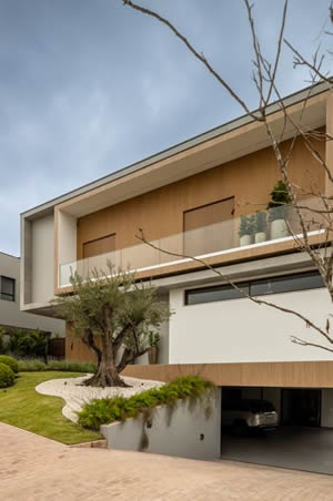 Neste projeto assinado pelos arquitetos Mariana Meneghisso e Alexandre Pasquotto, a garagem posicionada no pavimento inferior é uma solução que valoriza tanto a arquitetura quanto estética da fachada, que foi desenvolvida a partir de conceitos da neuroarquitetura | Projeto Meneghisso & Pasquotto Arquitetura | Foto: JP Image