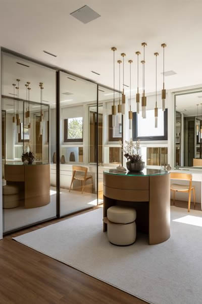 Em closets, por exemplo, o uso do reflecta contribui para a organização visual, reforçando a leitura de ordem e cuidado. Em áreas sociais, amplia a sensação de amplitude sem recorrer a espelhos convencionais, que muitas vezes geram desconforto visual.