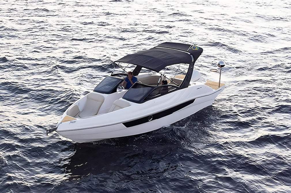 Coral 26 Aberta: Com 7,93 metros de comprimento e capacidade para até 12 pessoas, a Coral 26 Aberta, da carioca Lanchas Coral, também é uma opção voltada a quem inicia na náutica. O modelo prioriza o aproveitamento dos espaços internos a exemplo da cabine e banheiro privativos com acesso pelo banco localizado na proa, solução que amplia a funcionalidade a bordo. Valor: a partir de R$ 340.000,00.