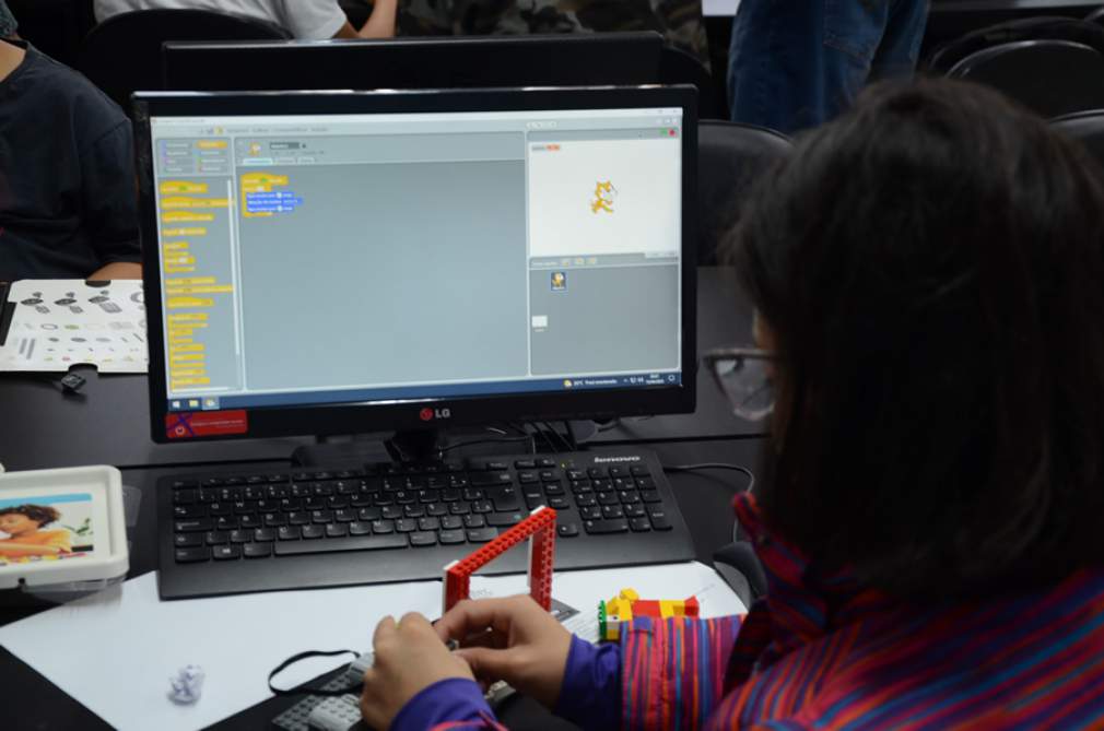 A partir de oficinas com a ferramenta de programação, os alunos são incentivados a imaginar e criar ideias e projetos