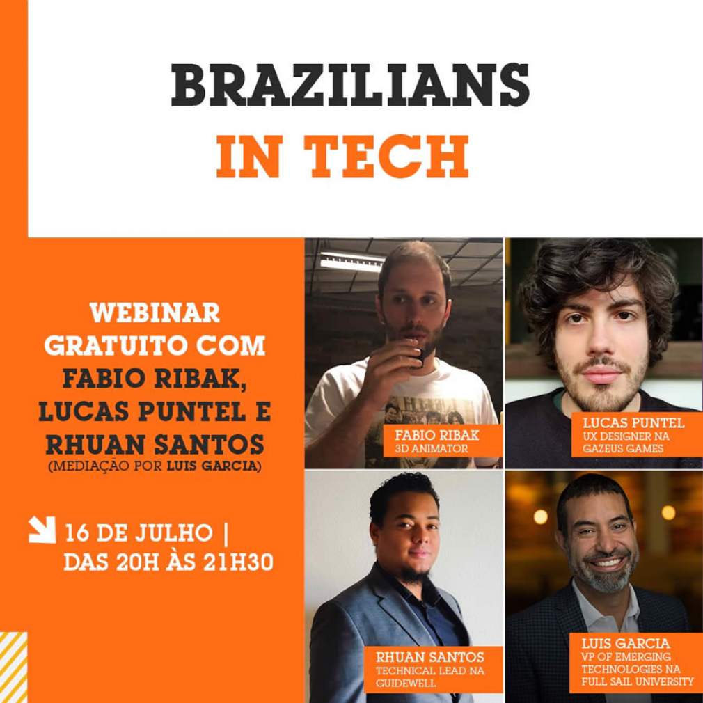 De olho nesse cenário promissor, foi criado o Brazilians In Tech, que é um painel que está sendo desenvolvido pela Full Sail University, instituição reconhecida como uma das mais importantes universidades na indústria do entretenimento, e que tem como mediador do encontro Luís E. García, VP of Emerging Technologies.
