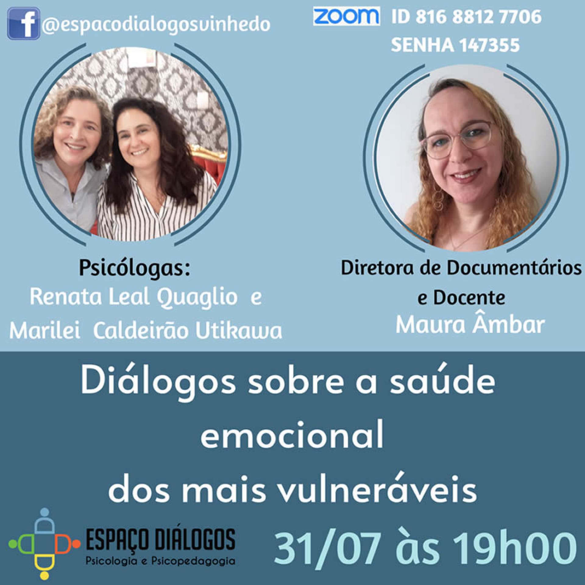 Saúde emocional dos mais vulneráveis - Espaço Diálogos Vinhedo bate papo ao vivo com a diretora de documentários e docente Maura Âmbar, de Valinhos-SP