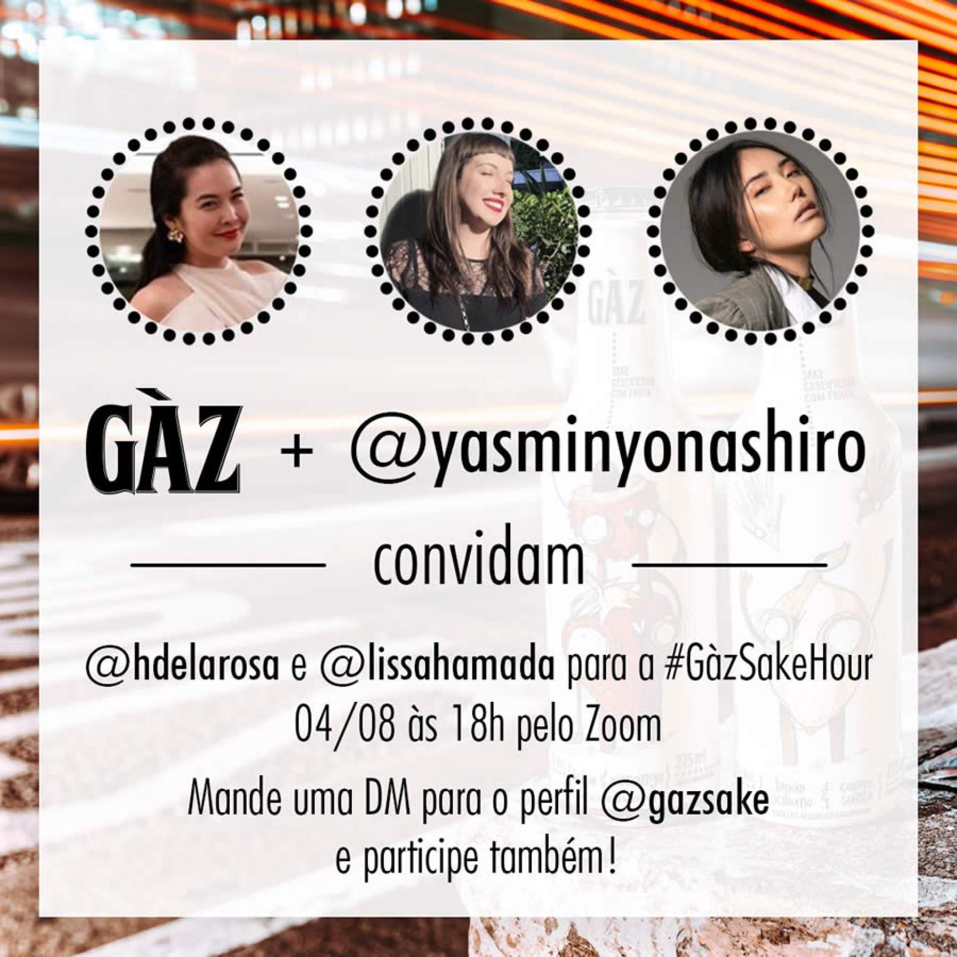 No próximo dia 04 de agosto, terça-feira, às 18h acontece a primeira edição do Gàz Sake Hour, uma roda de conversa online no Zoom conduzida pela sommelière Yasmin Yonashiro e as influenciadoras e fãs da cultura japonesa Lissa Hamada e Helo dela Rosa. O tema desta primeira edição é: O Japão que a gente não conhece.