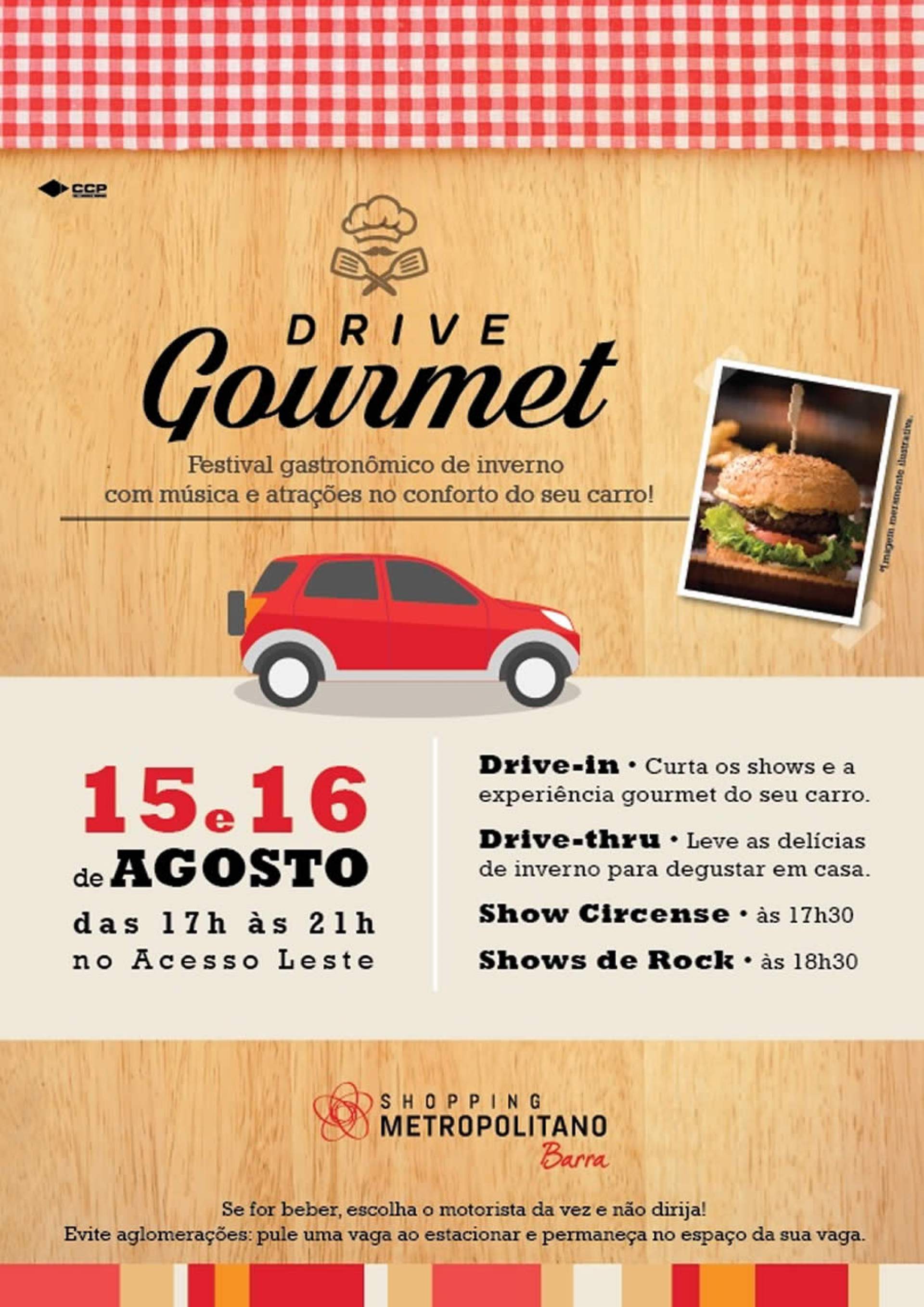 Comidinhas e diversão gratuita com conforto e segurança. Depois do sucesso da festa junina no estilo drive in, o Shopping Metropolitano Barra promove, nos dias 15 e 16 de agosto (sábado e domingo), um festival de inverno com o mesmo formato. Ainda respeitando as normas da OMS de evitar aglomerações a fim de conter a disseminação de Covid-19, o evento vai reunir barraquinhas de comidas de inverno e atrações gratuitas para crianças e adultos curtirem dentro do carro. O Drive Gastronômico acontece das 17h às 21h, no estacionamento Leste do Shopping Metropolitano Barra.