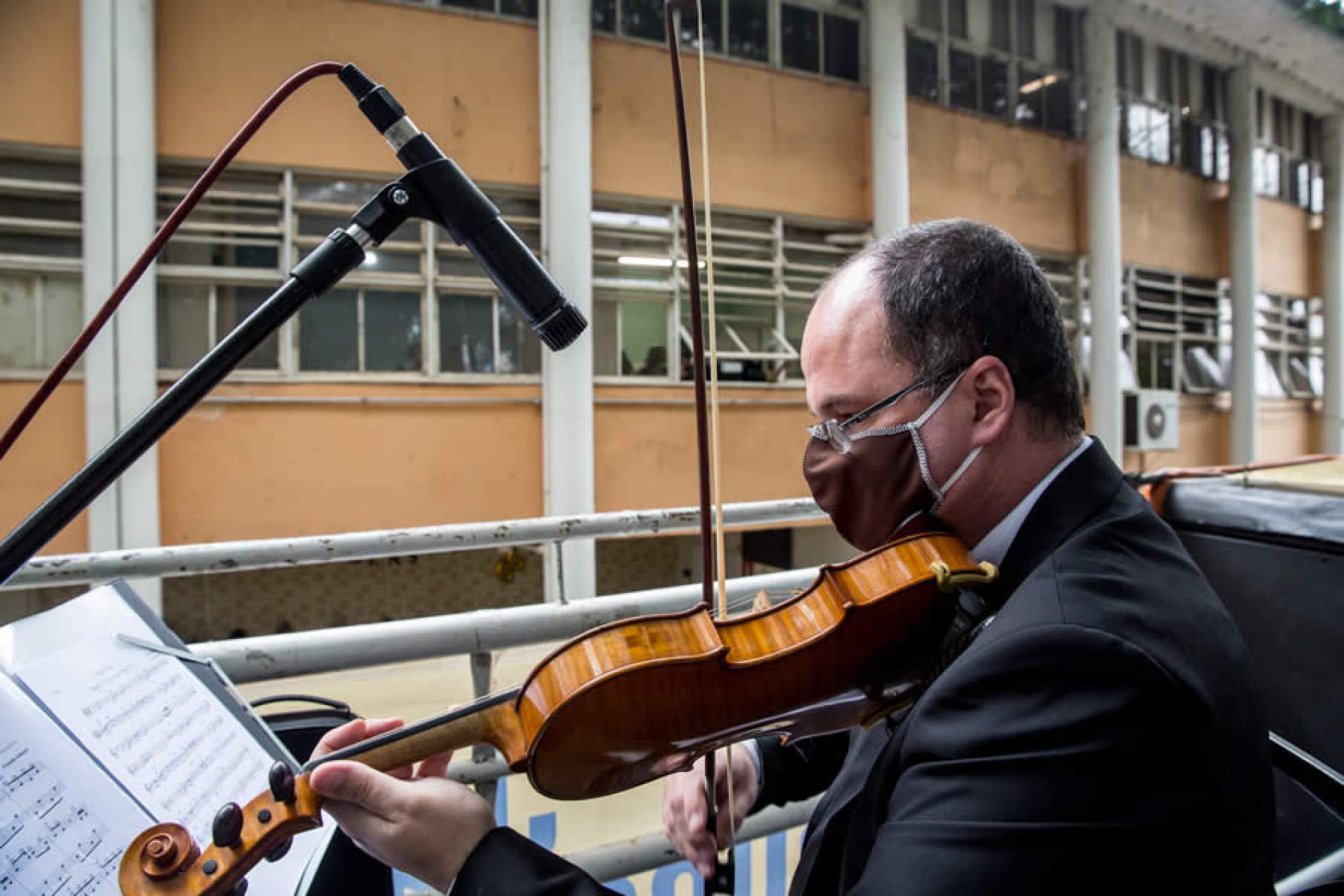 Por conta da pandemia, as atividades presenciais da Orquestra de Câmara Sesc estão suspensas por tempo indeterminado. As aulas vêm sendo realizadas online.