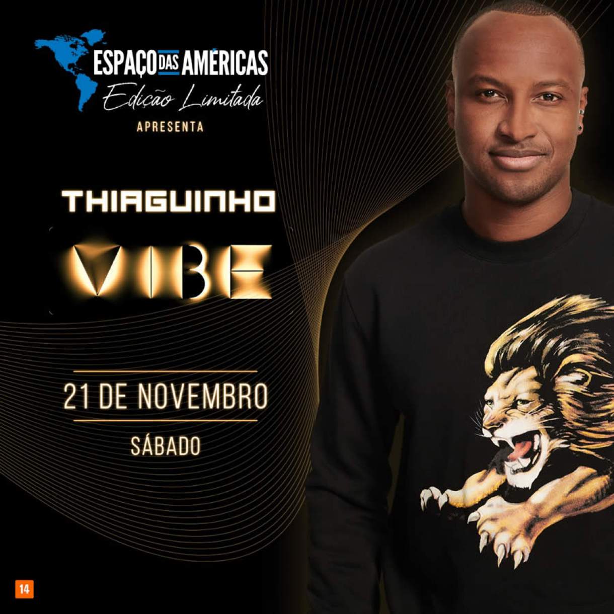 O Espaço das Américas reabre sua agenda de shows. Seguindo todas as recomendações dos órgãos públicos e atendendo aos protocolos de segurança e prevenção ao Covid-19, publicados no último decreto válido para a cidade de SP, a casa recebe o show do cantor Thiaguinho, que integrará o projeto “Edição Limitada“. A apresentação acontecerá no dia 21 de novembro e o artista chega para divulgar o mais recente projeto Vibe.